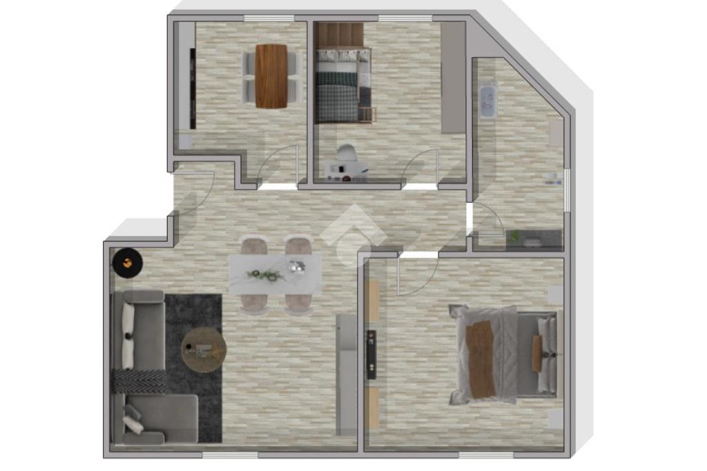 Die Immobilie befindet sich im zweiten Stock eines Mehrfamilienhauses und zeichnet sich durch einen geräumigen und hellen Wohnbereich, eine separate Wohnküche, ein Doppelzimmer, ein Einzelzimmer und ein Badezimmer mit Fenster und Badewanne aus.