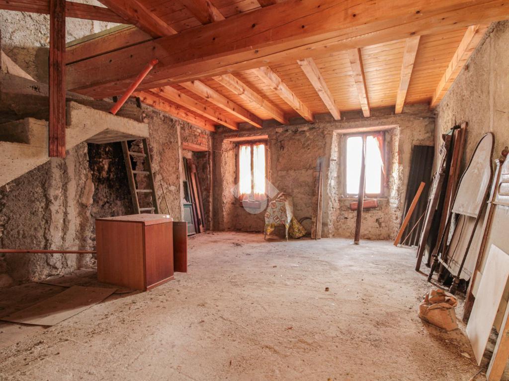 The main property is a ground-floor house on three levels. On the ground floor there is a large cellar with characteristic exposed stone walls, divided into two separate rooms. The living area is developed on the mezzanine and first floor: the entrance leads to a spacious room that can be used as a living area with a kitchen, while on the upper level there is a bedroom with access to a private balcony, as well as a bathroom. On the same floor there is also a loft, ideal as a study or additional space.
