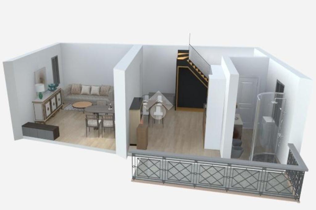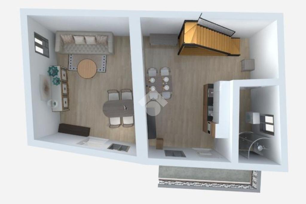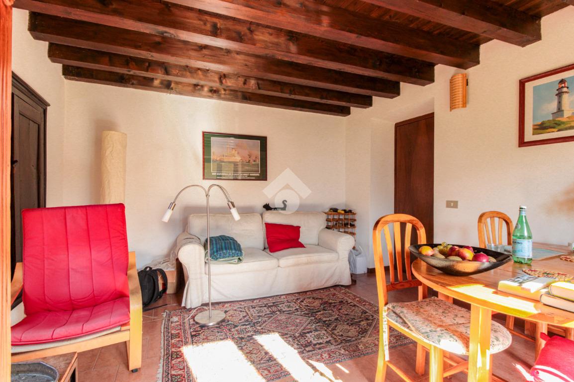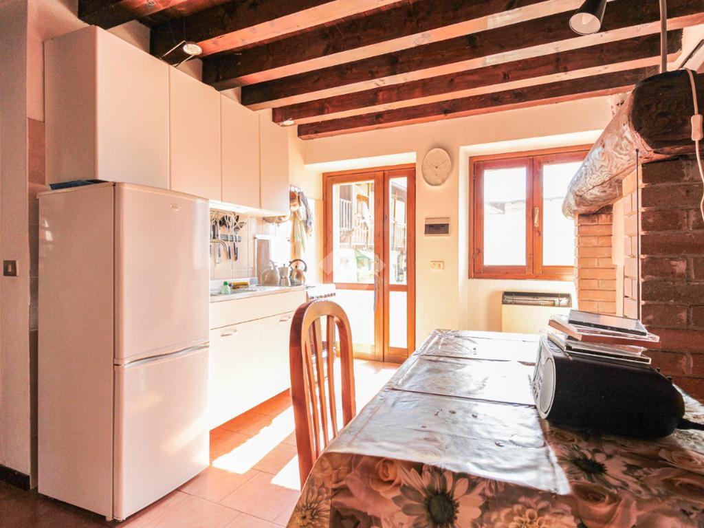 Salendo le scale esterne raggiungiamo un balcone che fa da ingresso alla casa, entrando ci troviamo nella cucina abitabile con camino, sulla sinistra troviamo la zona giorno e sulla destra un bagno con doccia.