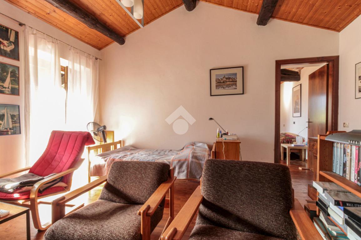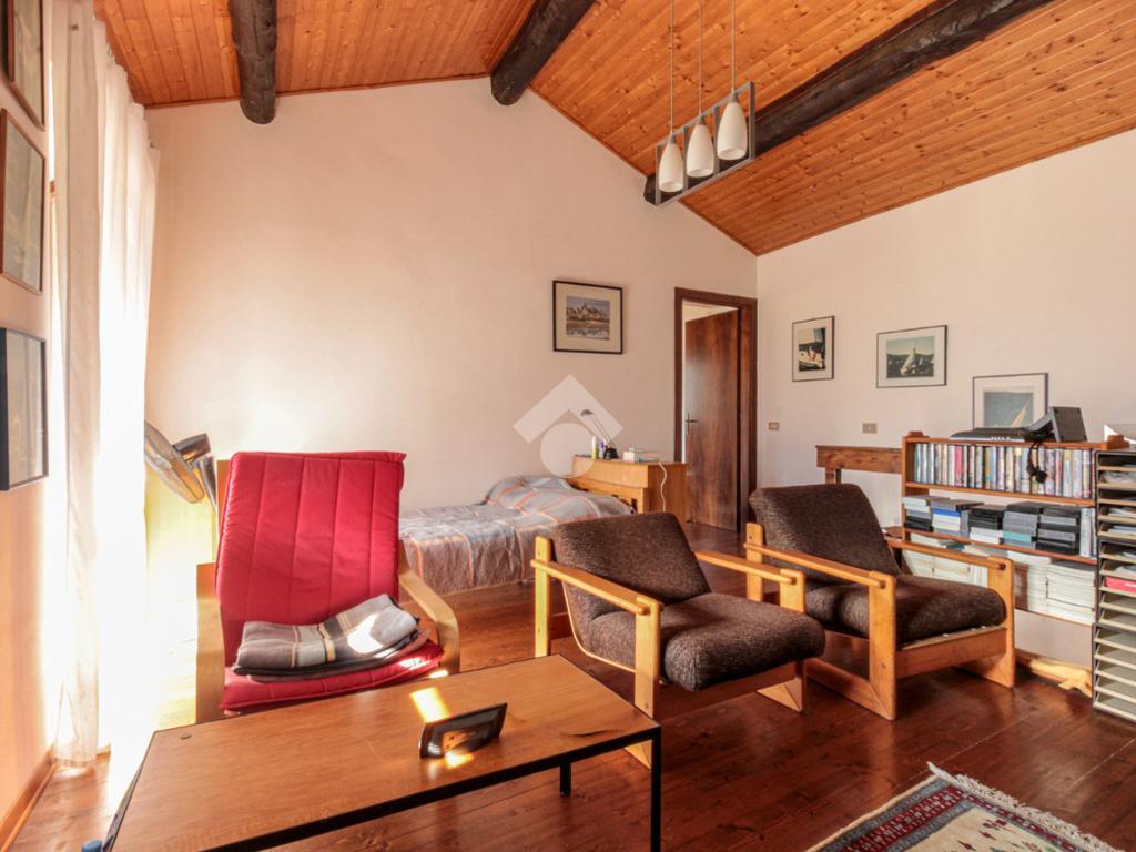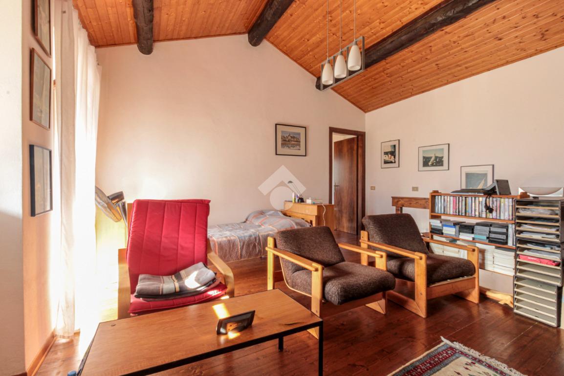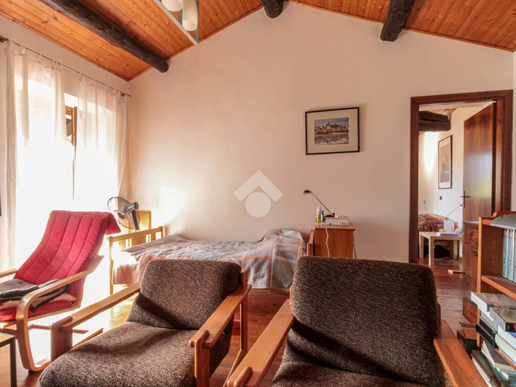 Tramite le scale in legno arriviamo alla zona notte, composta da una stanza utilizzabile come studio o zona relax, con affaccio su un secondo balcone con incantevole vista sulla vallata, ed una camera da letto matrimoniale.