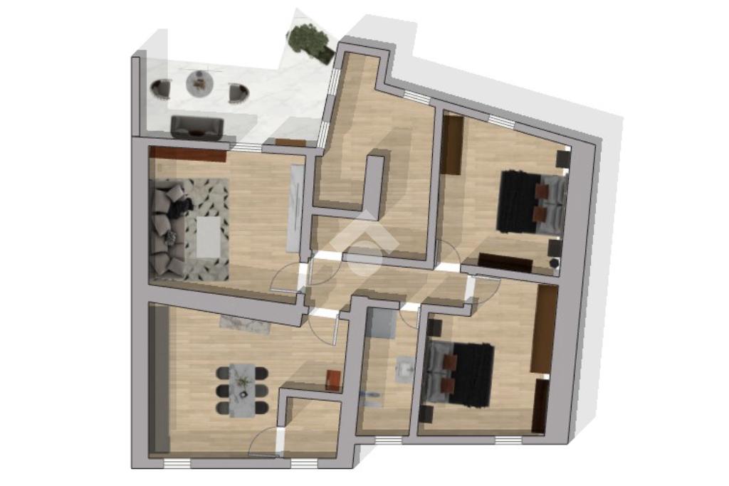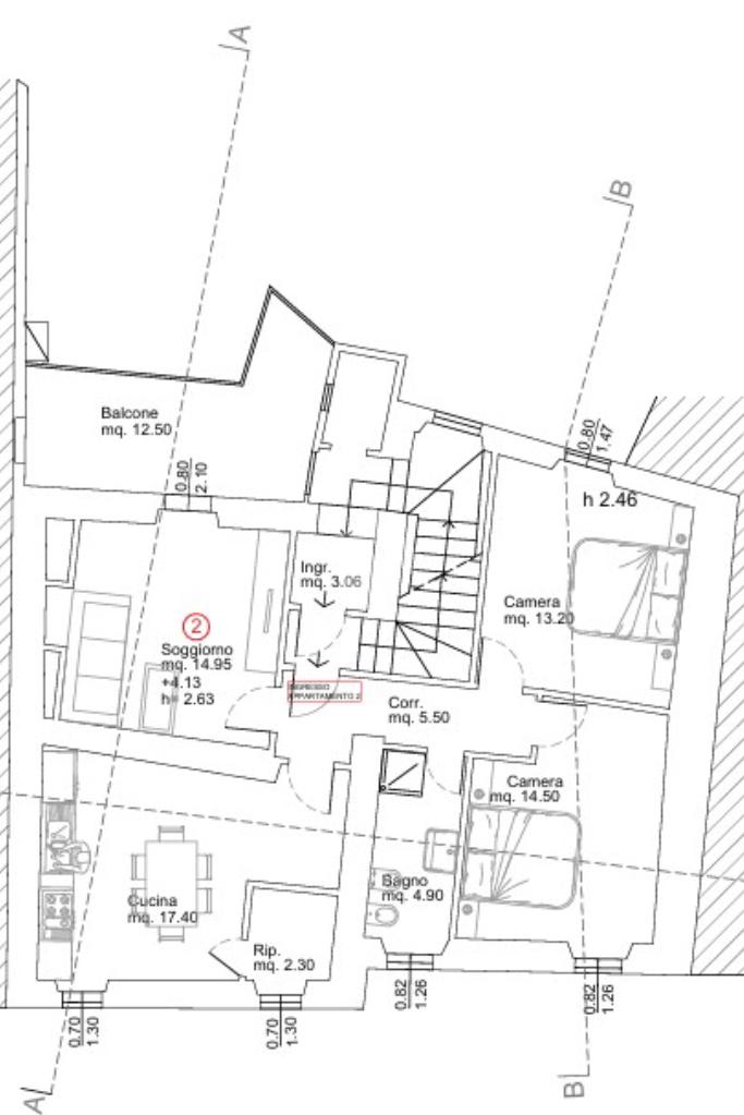 Zona giorno con affaccio sulla terrazza, cucina abitabile con dispensa, bagno finestrato con doccia, camera da letto padronale, ed una seconda camera da letto.