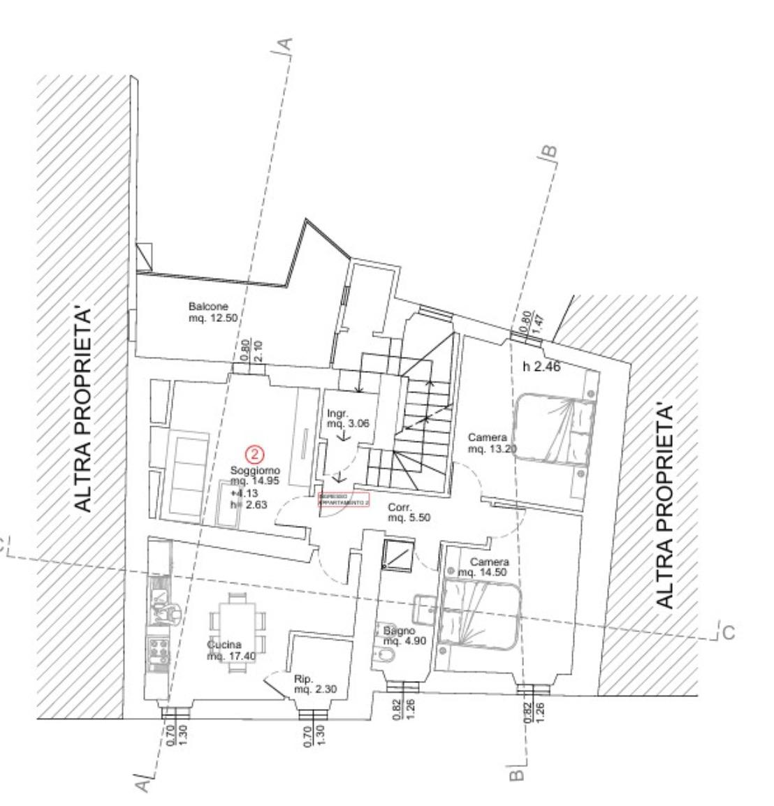 Ricavato da una casa di paese suddivisa in tre appartamenti, è sito al piano primo, ed è composto da: