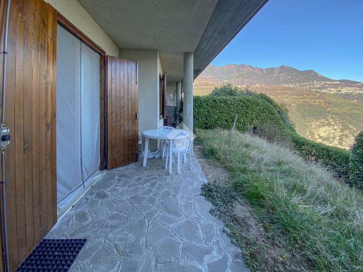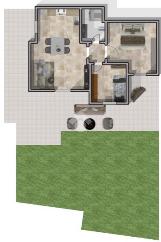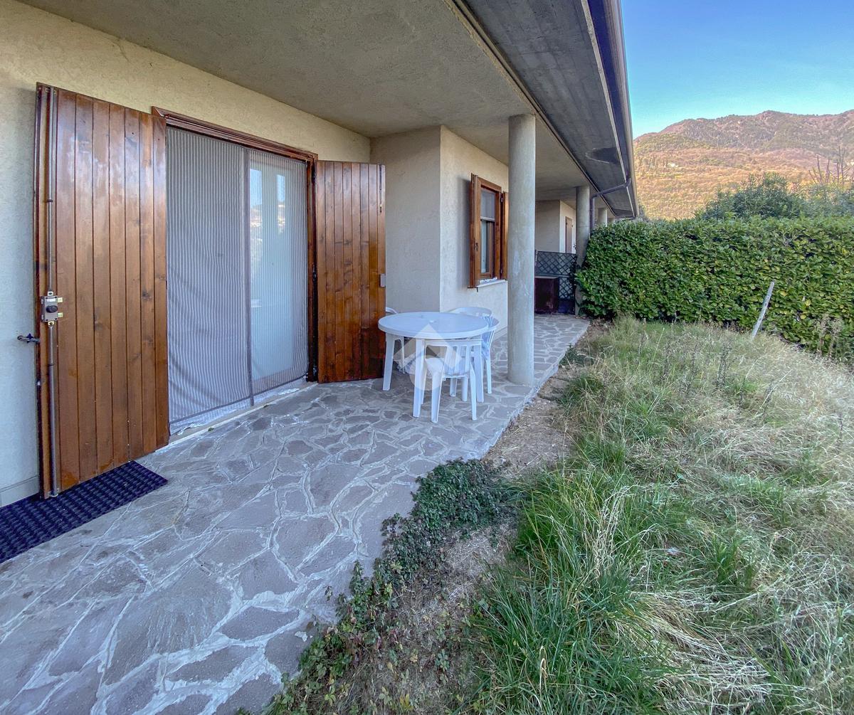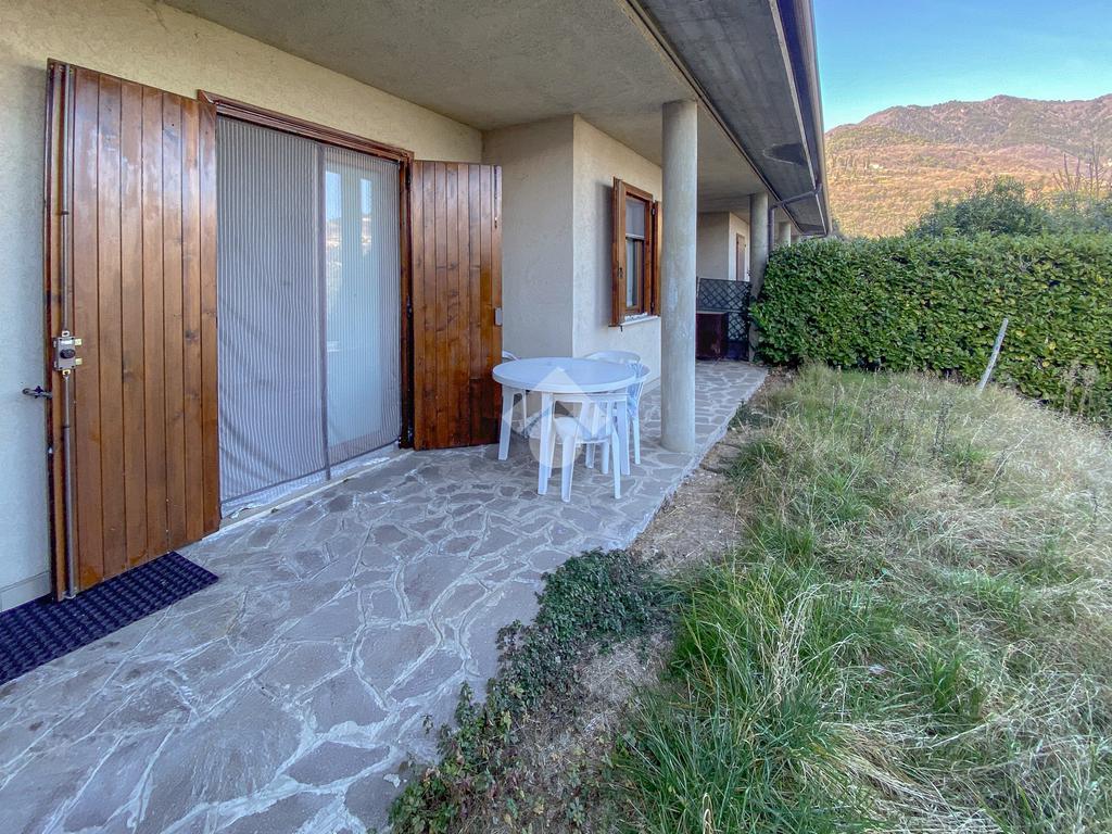 A fare da ingresso alla proprietà vi è un giardino privato con cortile e parziale vista lago, entrando nell'appartamento troviamo una spaziosa e luminosa zona giorno con angolo cottura, una camera singola, un bagno con doccia ed una camera matrimoniale con accesso al giardino.